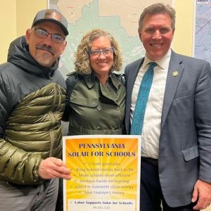 Since my election to local office in 2015, I have fought for ambitious action on climate change. Paul has been an outstanding partner. Through his seats on the Environmental Resources and Energy Committee and Secretary of the Climate Caucus, he has been an emissary for the Centre Region to the legislature and a booster for projects that change lives. When Rep. Fiedler put forward the Solar for Schools program, my fellow School Leadership in Clean Energy member Gretchen Brandt (pictured at right) and I approached Paul to co-sponsor the bill. He didn’t hesitate. We will definitely be using Solar for Schools to fund our next solar projects. Finally, he invited students from the Local Climate Action Program to meet with members of the Climate Caucus after we presented to the leadership of the Department of Conservation and Natural Resources on their greenhouse gas inventory. He also arranged for our students to be recognized on the House floor!