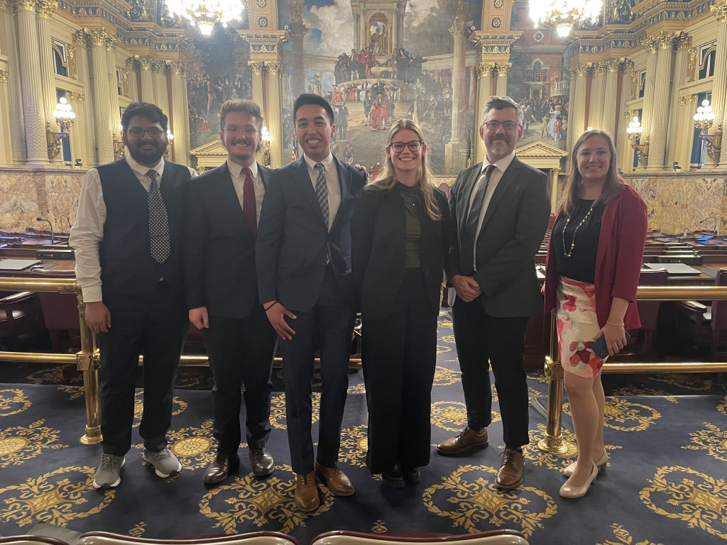 In 2022, my colleague Brandi Robinson and I took over the Pennsylvania Department of Environmental Protection’s Local Climate Action Program (LCAP), bringing it to Penn State Sustainability. We have worked with dozens of diverse and driven students who have gone on to work at climate funds, in renewable energy firms, and carbon inventorying and performance. We have collaborated with countless volunteers, elected officials, and staff from dozens of municipalities and counties, Pennsylvania’s Department of Conservation and Natural Resources, and the Pennsylvania State House’s Climate Caucus. We have inventoried millions of tons of carbon dioxide equivalent and delivered policy, program, and planning guidance for the governments of about 1.5 million Pennsylvanians. Last year, the LCAP was recognized on the Pennsylvania House floor by Speaker Joanna McClinton (picture below).